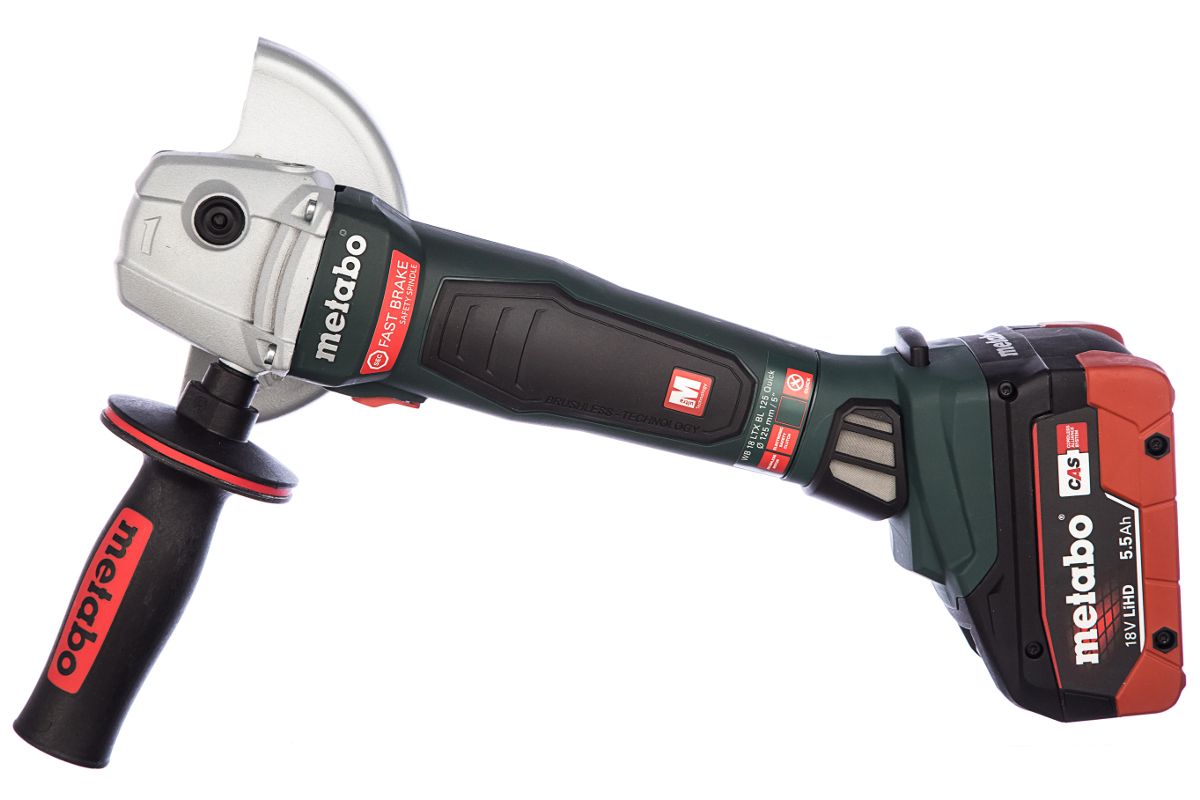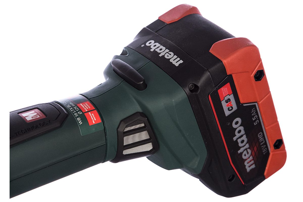 WB 18 LTX BL 125 QUICK (613077840) АККУМУЛЯТОРНАЯ УГЛОВАЯ ШЛИФОВАЛЬНАЯ МАШИНА 18В ; METALOC Badge New RU WB 18 LTX BL 125 Quick (613077840) Аккумуляторная угловая шлифовальная машина № для заказа: 613077840 EAN (Европейский номер товара): 4007430286208 Напряжение аккумуляторного блока:18 В Диаметр шлифовальных кругов:125 мм Число оборотов холостого хода:9000 /мин Уникальный закрытый бесщеточный двигатель Metabo с оптимальной защитой от пыли позволяет выполнять работы быстро и эффективно Тонкая конструктивная форма для работы без утомления в стесненных условиях или над головой Быстрая тормозная система с безопасным шпинделем для максимальной защиты пользователя: останавливает круг после выключения в течение 2 секунд и предотвращает откручивание зажимной гайки в процессе торможения Система Metabo Quick для смены круга без использования инструментов с помощью быстрозажимной гайки Поворотный аккумуляторный блок для облегчения работы в стесненных условиях Электронная система защитного отключения уменьшает отдачу при блокировке диска - высокий уровень защиты пользователя Съемный пылезащитный фильтр для защиты двигателя от крупных частиц